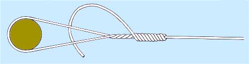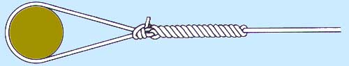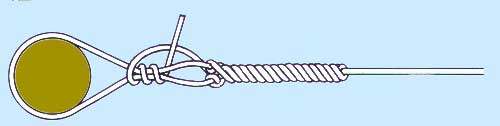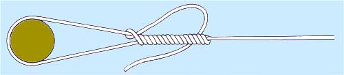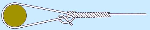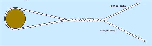 Jetzt wird das Schnurende zurück über die Windungen gewickelt. Hierbei muß die Hauptschnur aber weiterhin stramm gehalten werden..